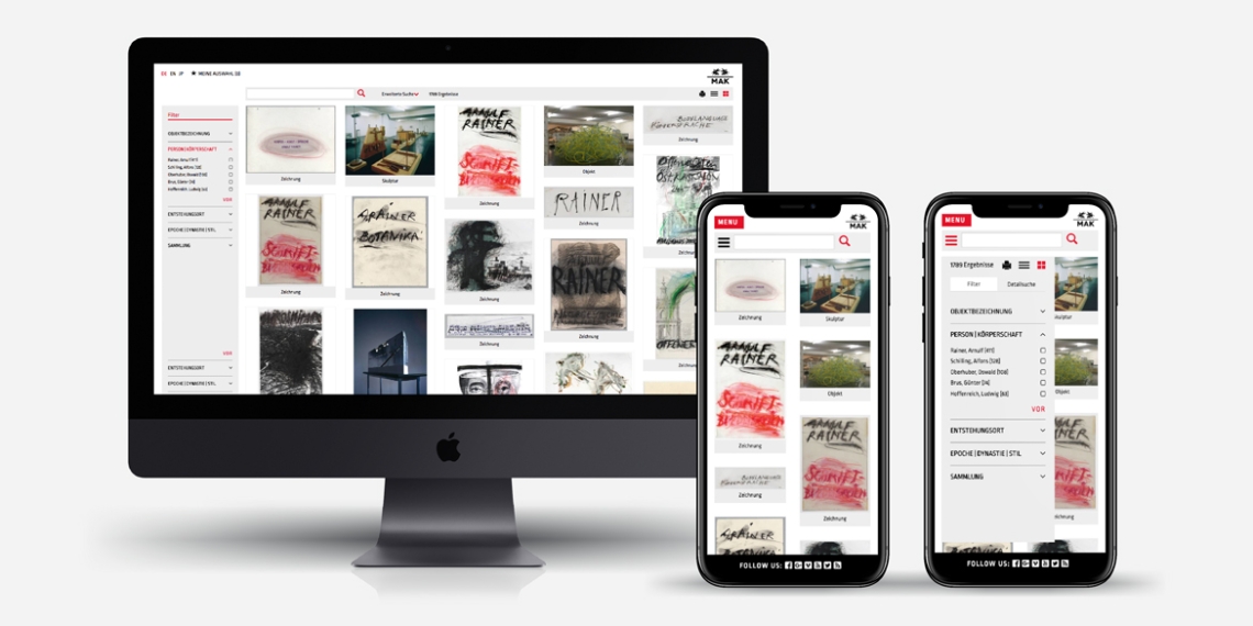 Für das MAK - Museum für angewandte Kunst Wien entwickelten wir das Frontend der neuen Online-Sammlung. In der Onlinesammlung des Museums sind annähernd 300.000 Kunstwerke in hochauflösenden Fotos zu bestaunen.